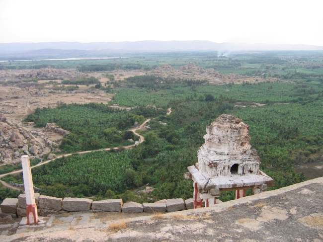 There was a temple on the hill, and we stood on the roof to see the landscape.